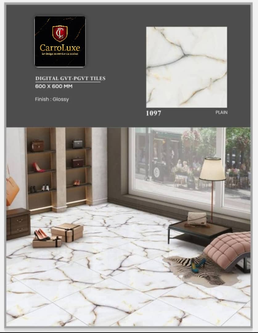 Avec son design marbré raffiné, sa finition ultra brillante et son format moderne 600x600 mm, ce carrelage transforme chaque pièce en un espace luxueux et lumineux. Parfait pour les salons, showrooms ou espaces commerciaux chic.